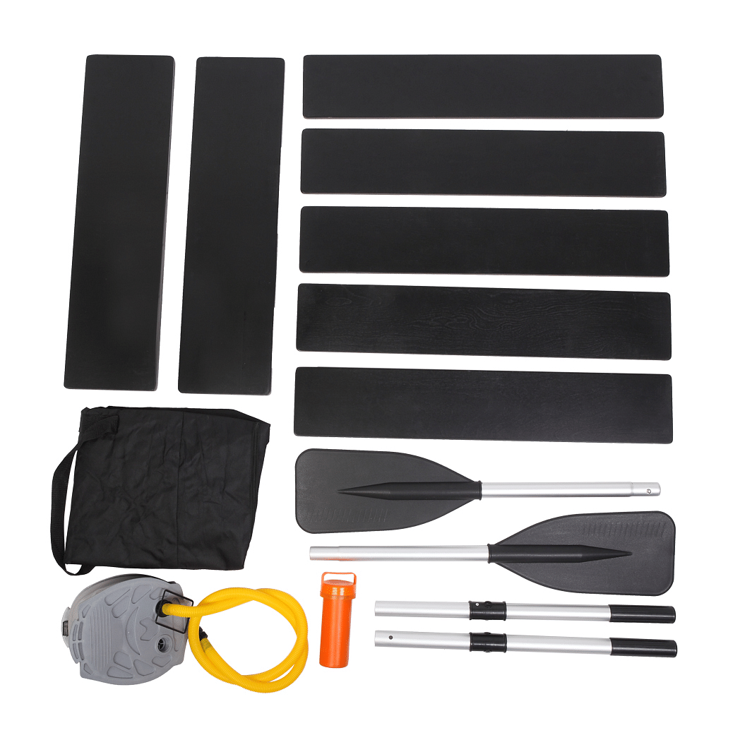 1. Inflatable boat kit–including paddles,pedal pumps, repair kits, carrying bags, etc. You only need to buy our productswithout having to buy other auxiliary tools.